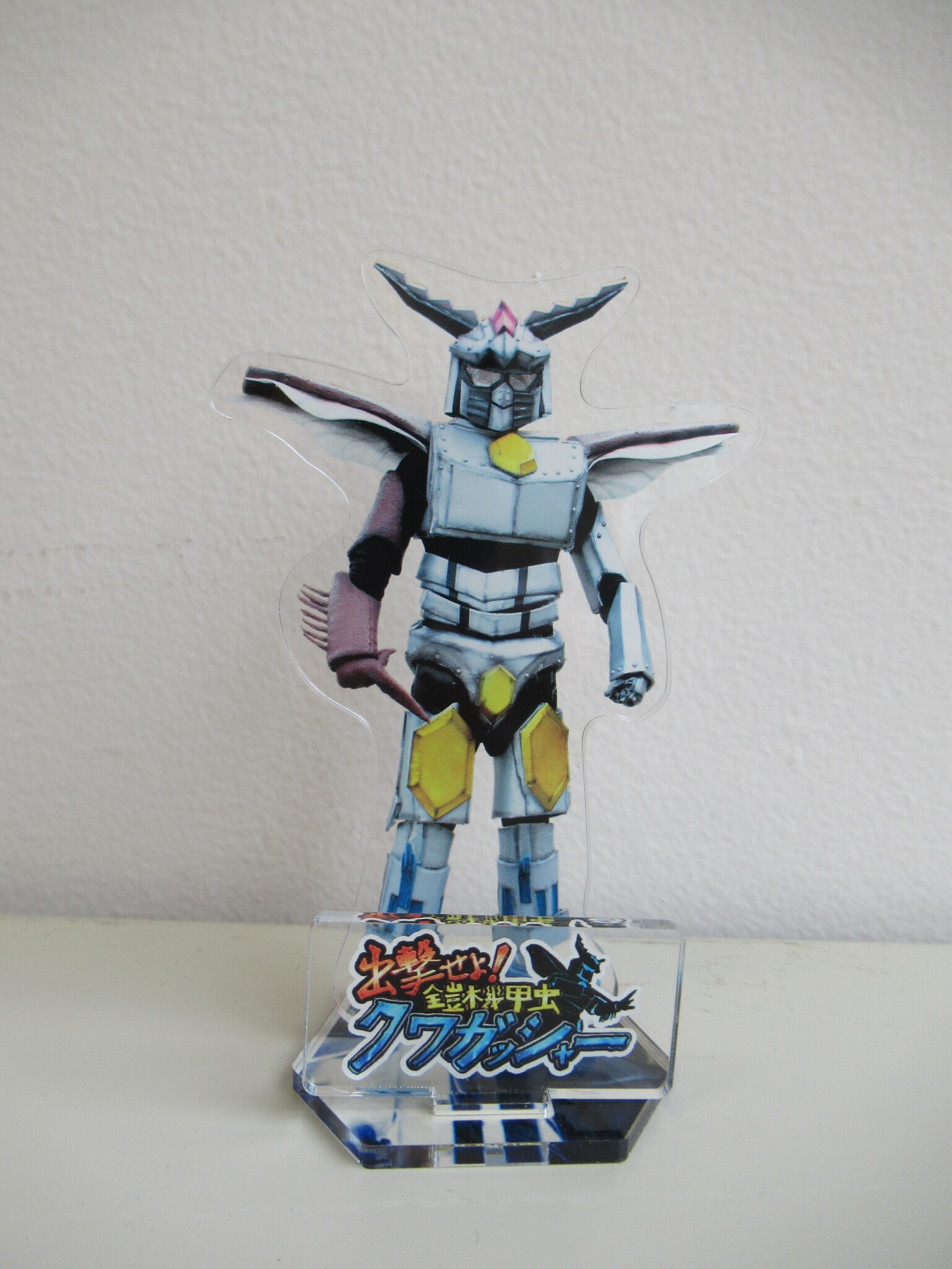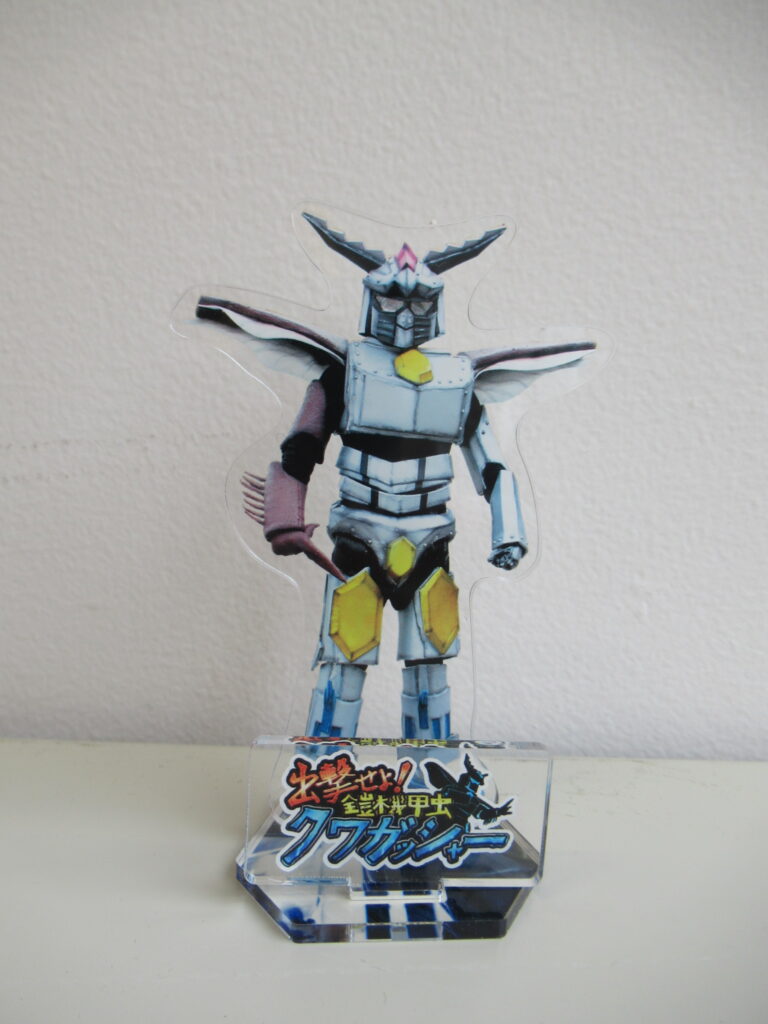 すかがわ特撮塾4期生制作作品『出撃せよ!鎧機甲虫クワガッシャー』の公開に合わせて、3月14日の作品上映会会場・3月15日の特別上映イベント会場にてクワガッシャーのアクリルスタンドを販売予定です。※センターでは3月15日より販売開始予定